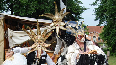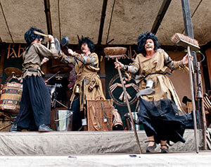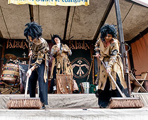 - ein zerlumptes Trio - mischt sich unter das Volk.Ein lustiges Spektakel, in dem die Marktstände und das Publikum mit eingebunden werden, eingerahmt von einer rhythmischen Performance mit Besen, Eimern und Jonglage/Tanz